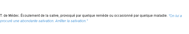 Ancienne définition « salivation » du dictionnaire académique Français, parution de l’année 1835.