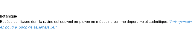 Définition de l’Académie Française (édition de 1932) pour le mot « salsepareille ».
