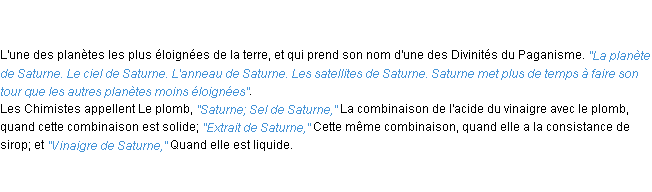 Ancienne définition de l’Académie Française (édition de 1798) pour le mot « saturne ».
