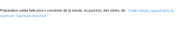 Définition de l’équipe de la-definition.fr (édition de 2009) pour le mot « saumure ».Merci à Guillaume et Solange pour la numérisation du mot saumure.