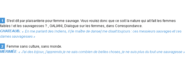 Définition de « sauvagesse » issue du Littré (Auteur Emile Littré, édité en 1876).
