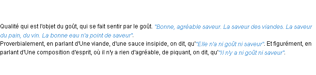 Définition « saveur » du dictionnaire académique Français, parution de l’année 1932.