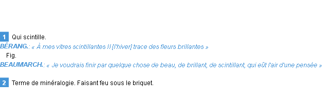 Ancienne définition « scintillant » du dictionnaire académique Français, parution de l’année 1835.