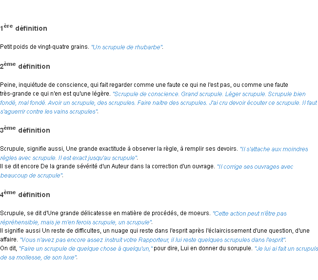 Signification parue en 2009 (source la-definition.fr).Merci à Benoite et Noémie pour la numérisation du mot scrupule.