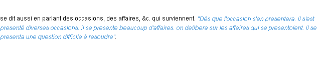 Ancienne définition académique pour le terme « se presenter » (parue en 1694).