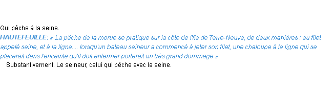 Signification éditée en 1876 pour le terme « seineur » par Emile Littré.