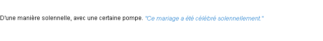 Signification parue en 2009 (source la-definition.fr).Merci à Arnaud et Adélaïde pour la numérisation du mot solennellement.