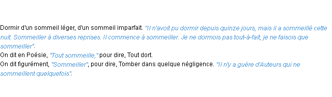 Signification éditée en 1932 pour le terme « sommeiller » par l’Académie Française.