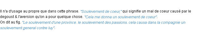 Ancienne signification issue du dico de l’Académie Française, parue en 1694.Merci à Ignace et éloise pour la numérisation du mot soulevement.