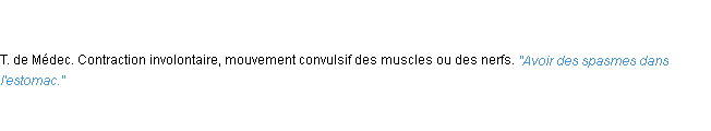 Signification parue en 2009 (source la-definition.fr).Merci à Bénédicte et Papillion pour la numérisation du mot spasme.