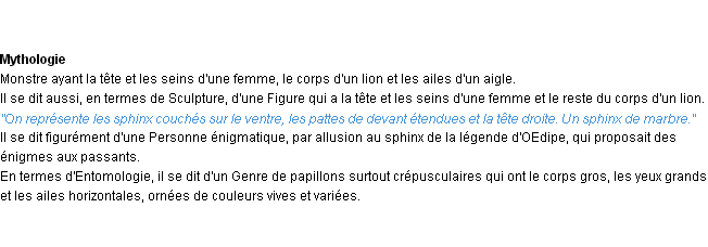Ancienne définition académique pour le terme « sphinx » (parue en 1835).