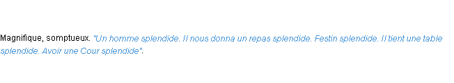 Signification éditée en 2010 par l’équipe de la-definition.fr.Merci à Micheline et Marise pour la numérisation du mot splendide.