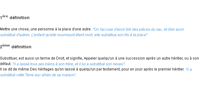 Signification éditée en 1932 pour le terme « substituer » par l’Académie Française.