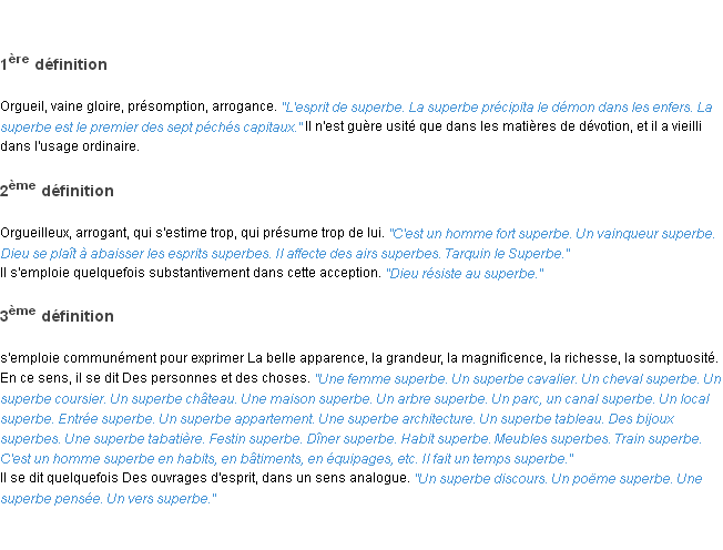 Définition de l’Académie Française (édition de 1932) pour le mot « superbe ».