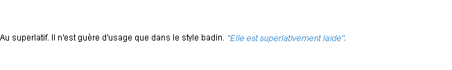 Ancienne signification éditée en 1835 pour le terme « superlativement » par l’Académie Française.
