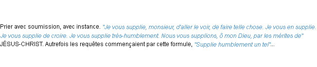 Ancienne définition « supplier » du dictionnaire académique Français, parution de l’année 1835.