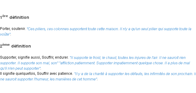 Ancienne définition « supporter » du dictionnaire académique Français, parution de l’année 1798.