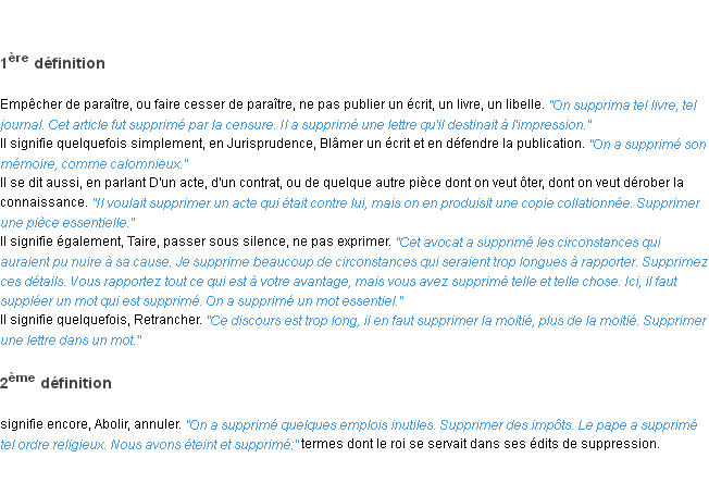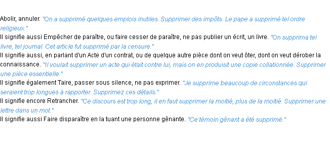 Définition académique pour le terme « supprimer » (parue en 1932).
