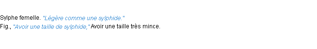 Signification du terme « sylphide », parution de 1932, dictionnaire académique Français.Merci à Claire et Theirn pour la numérisation du mot sylphide.