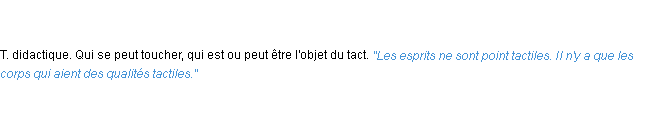 Ancienne signification éditée en 1798 pour le terme « tactile » par l’Académie Française.