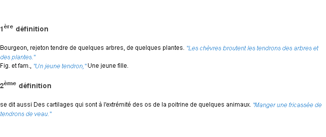 Ancienne définition de « tendron » de source académique (Académie Française, parution de 1835).