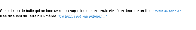 Signification parue en 2009 (source la-definition.fr).Merci à Barnabé et Yves pour la numérisation du mot tennis.