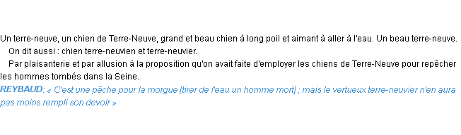 Définition de « terre-neuve » issue du Littré (Auteur Emile Littré, édité en 1876).Merci à Sidonie et Christophe pour la numérisation du mot terre-neuve.