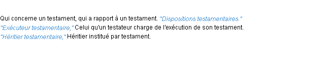 Définition du mot « testamentaire » par l’Académie Française (édition de 1932).