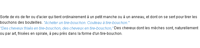 Définition de « tire-bouchon » de source académique (Académie Française, parution de 1932).