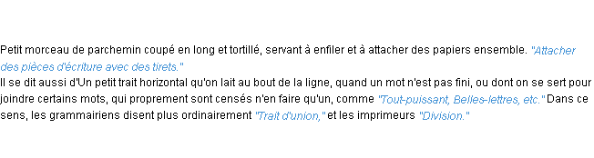 Définition du mot « tiret » par l’Académie Française (édition de 1932).