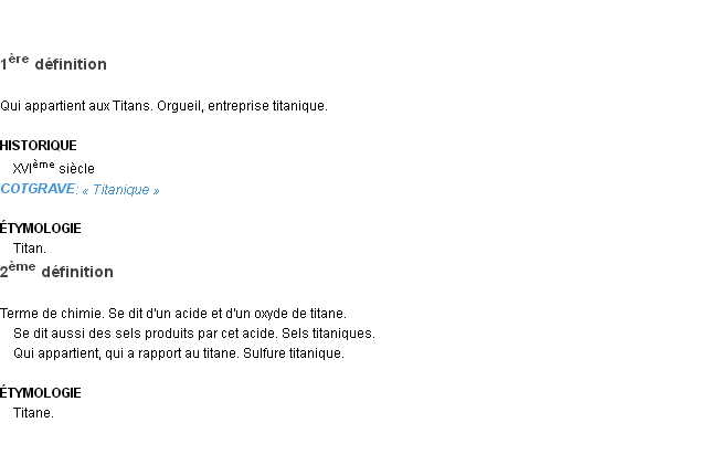Définition de « titanique » de source académique (Académie Française, parution de 1932).