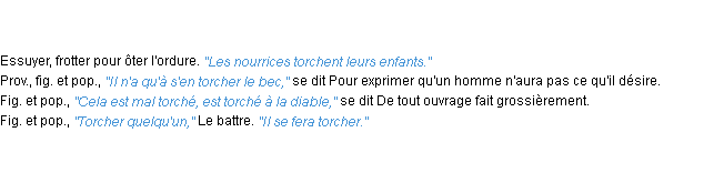 Signification éditée en 1932 pour le terme « torcher » par l’Académie Française.
