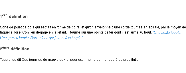 Ancienne signification éditée en 1798 pour le terme « toupie » par l’Académie Française.