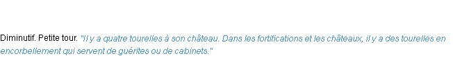 Définition de l’équipe de la-definition.fr (édition de 2009) pour le mot « tourelle ».Merci à Geneviève et Léandre pour la numérisation du mot tourelle.