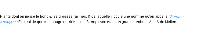 Ancienne définition académique pour le terme « tragacante » (parue en 17962).