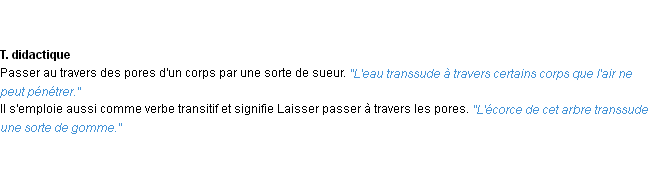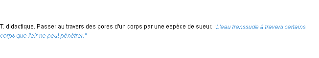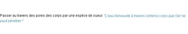 Ancienne signification éditée en 1798 pour le terme « transsuder » par l’Académie Française.