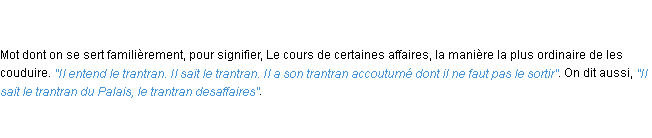 Ancienne définition du mot « trantran » par l’Académie Française (édition de 1835).