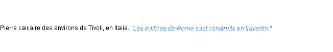Signification du terme « travertin », parution de 1876 (dictionnaire le Littré).Merci à Margot et Thierry pour la numérisation du mot travertin.