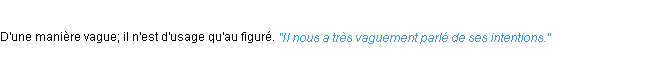 Signification éditée en 2010 par l’équipe de la-definition.fr.Merci à Florentin et Marielle pour la numérisation du mot vaguement.