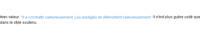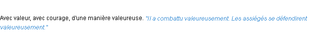 Quelques citations et utilisation du mot valeureusement dans la littérature et les publications journalistiques :