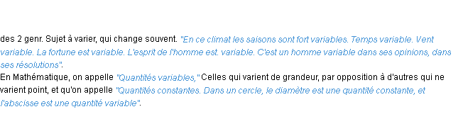 Ancienne définition « variable » du dictionnaire académique Français, parution de l’année 1835.