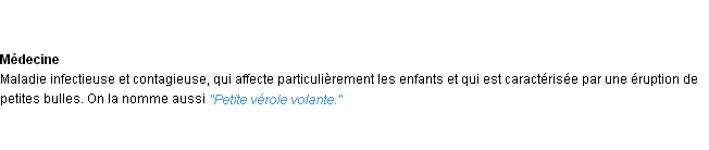Définition issue du dictionnaire wiktionary pour le mot « varicelle ».