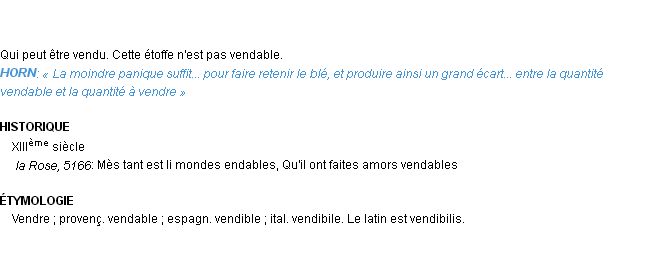 Définition développée dans dictionnaire d’Emile Littré (ancienne édition de 1876).Merci à Félix et Faustine pour la numérisation du mot vendable.
