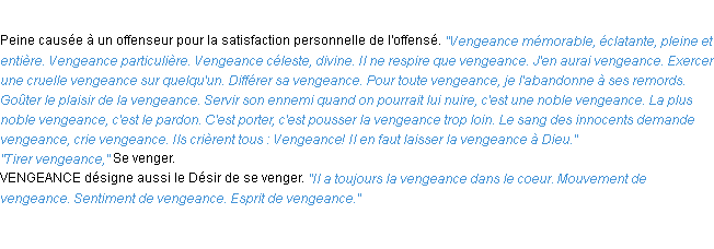 Ancienne définition académique pour le terme « vengeance » (parue en 1835).