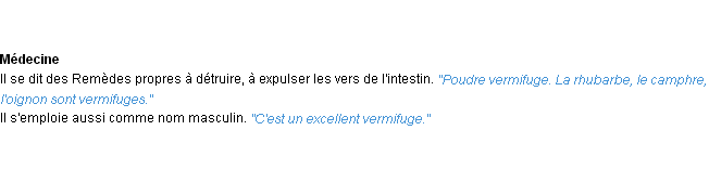 Définition académique pour le terme « vermifuge » (parue en 1932).