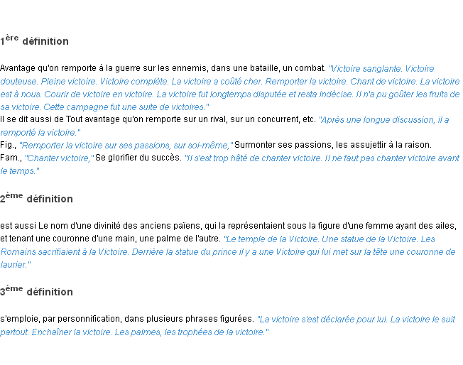 Signification parue en 2009 (source la-definition.fr).Merci à Amélie et Geneviève pour la numérisation du mot victoire.