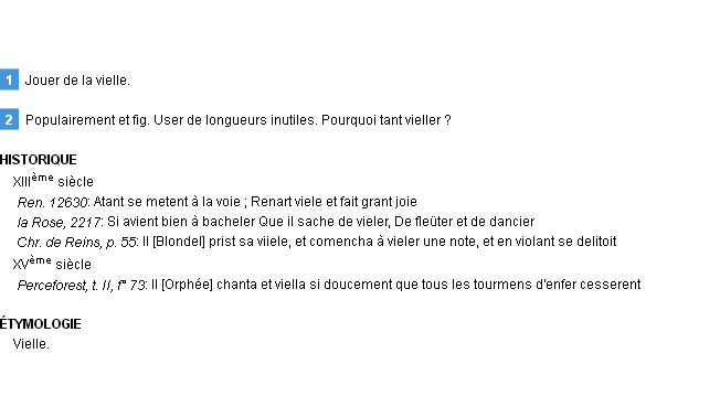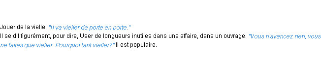 Ancienne signification du terme « vieller », parution de 17962, dictionnaire académique Français.- Autres Recherches
