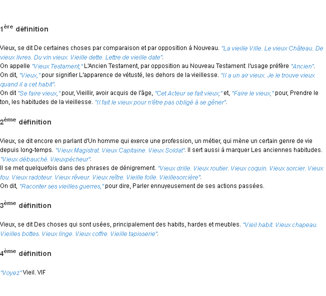 Ancienne signification éditée par l’Académie Française, année 17962.Merci à Virginie et Cyrille pour la numérisation du mot vieux.