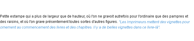 Ancienne signification éditée en 1798 pour le terme « vignette » par l’Académie Française.