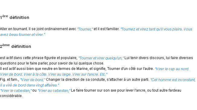 Définition de l’Académie Française (édition de 1932) pour le mot « virer ».